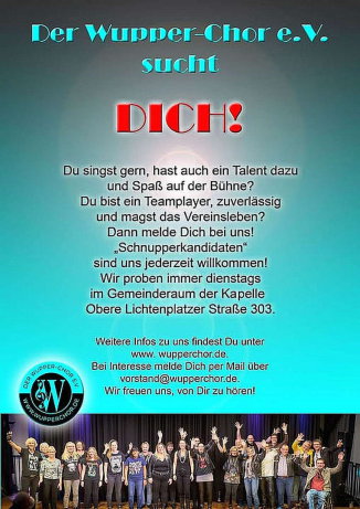 Wir sind in fast allen Stimmlagen, besonders im Sopran, Tenor und Bass auf Verstärkung angewiesen und freuen uns über neue Sängerinnen und Sänger.